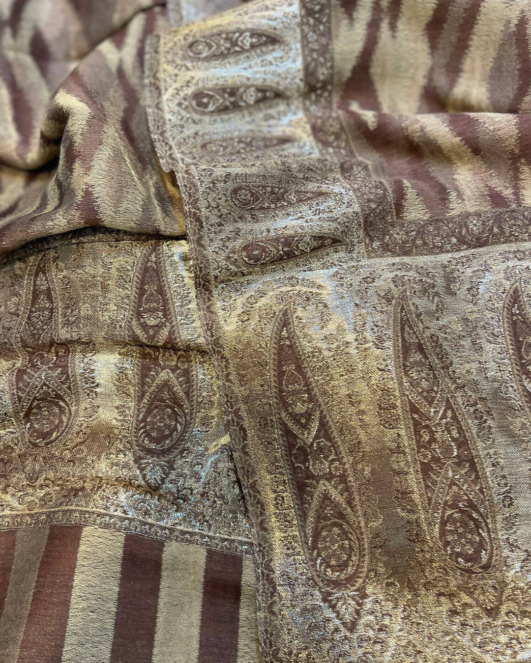 Disponible en trois couleurs profondes et raffinées — noir, marron et vert — ce châle révèle un motif soigneusement travaillé et une bordure inspirée de l’art textile traditionnel. Chaque nuance met en valeur son charme unique, faisant de cette pièce un véritable plaisir à porter, admirer et préserver. Un indispensable du garde-robe qui traverse le temps avec style.