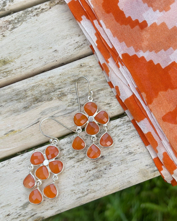 Elégantes et lumineuses, ces boucles d'oreilles en argent 925 sont serties de pierres naturelles cornaline taillées en forme de gouttes.