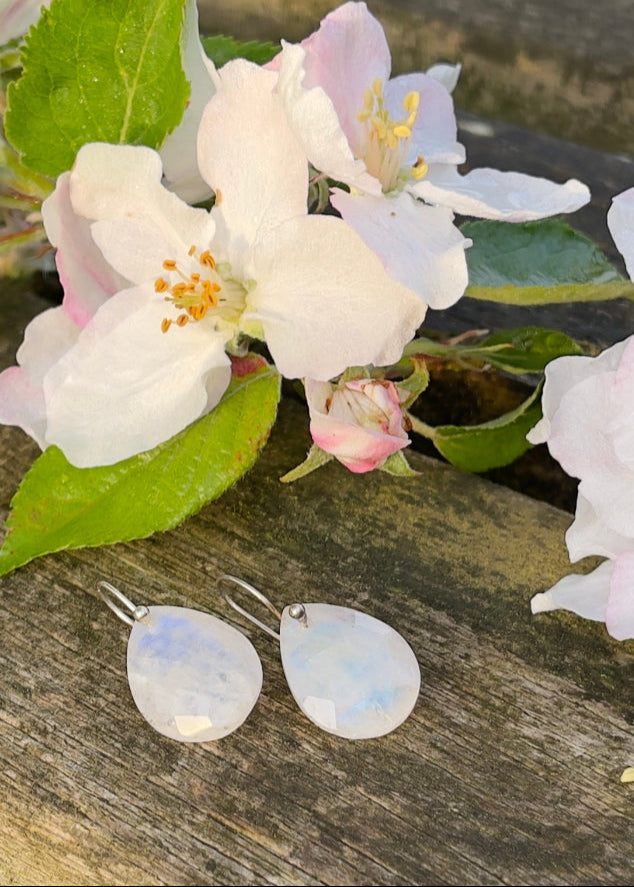 Boucles d’oreilles en Pierre de lune - Goutte Facettée