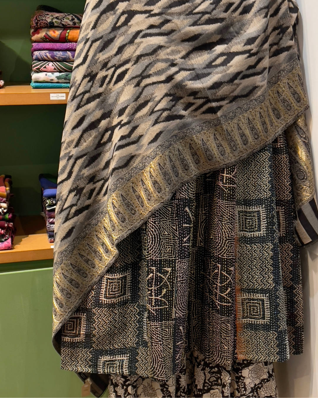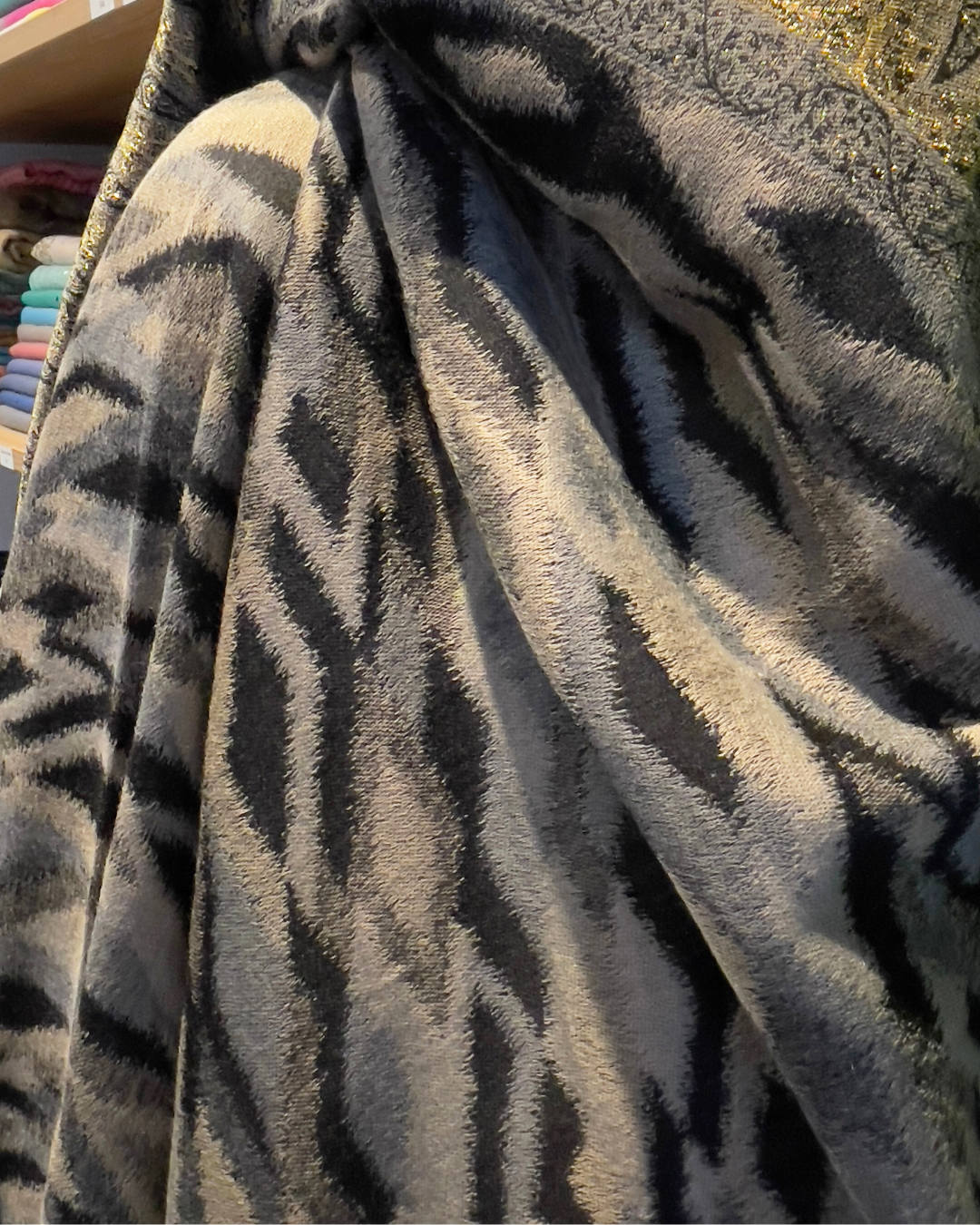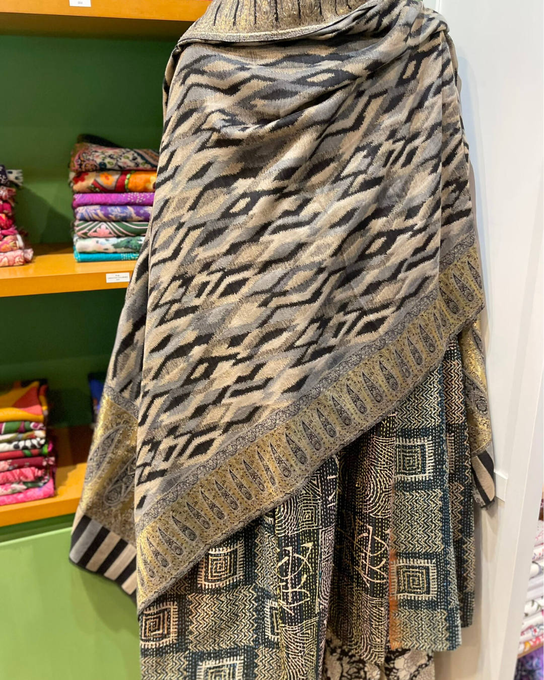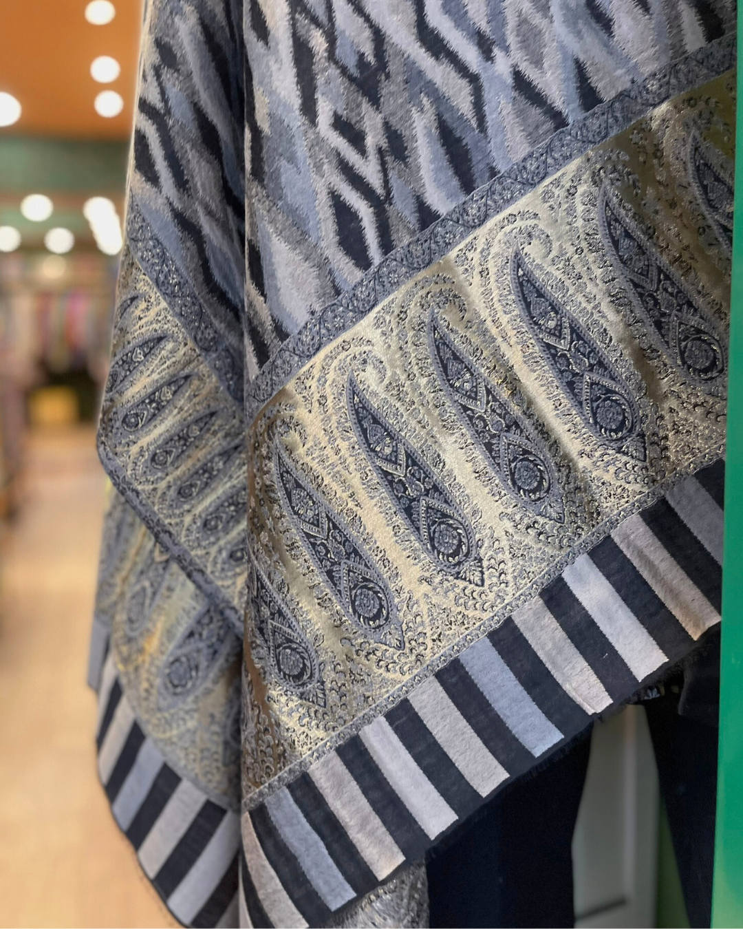 Disponible en trois couleurs profondes et raffinées — noir, marron et vert — ce châle révèle un motif soigneusement travaillé et une bordure inspirée de l’art textile traditionnel. Chaque nuance met en valeur son charme unique, faisant de cette pièce un véritable plaisir à porter, admirer et préserver. Un indispensable du garde-robe qui traverse le temps avec style.
