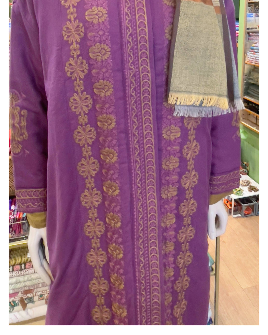 Broderie fine réalisée sur toute la longueur