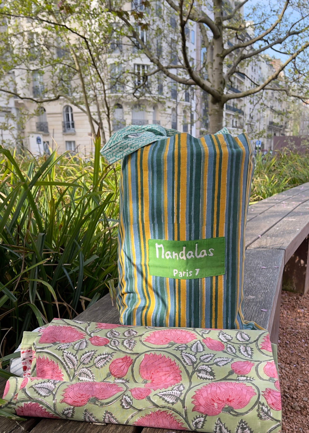 Fabriquée à la main selon les techniques artisanales de block-printing, chaque pièce est unique et peut présenter de légères variations, signes de son authenticité.