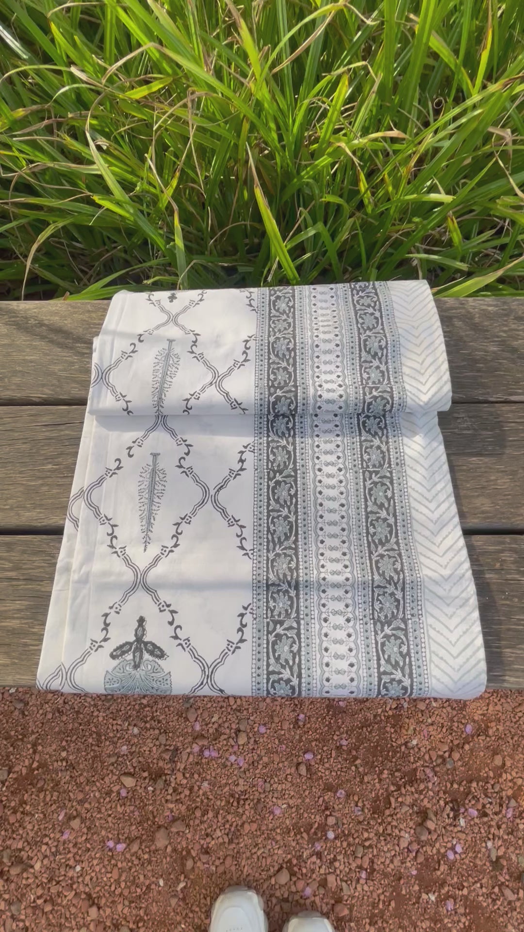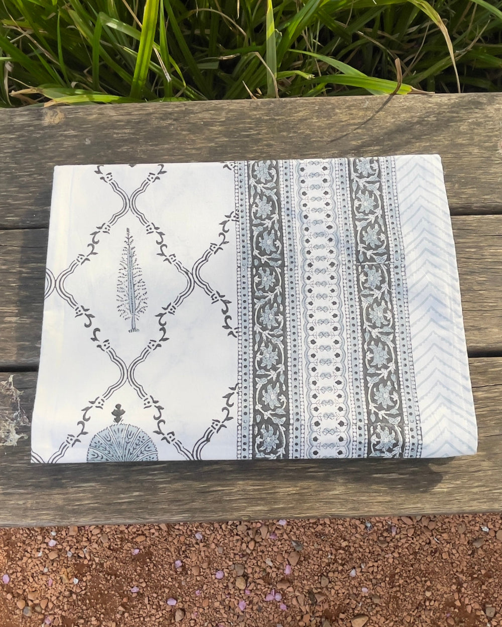 Nappe Rajasthan Gris- en coton imprimé à la main