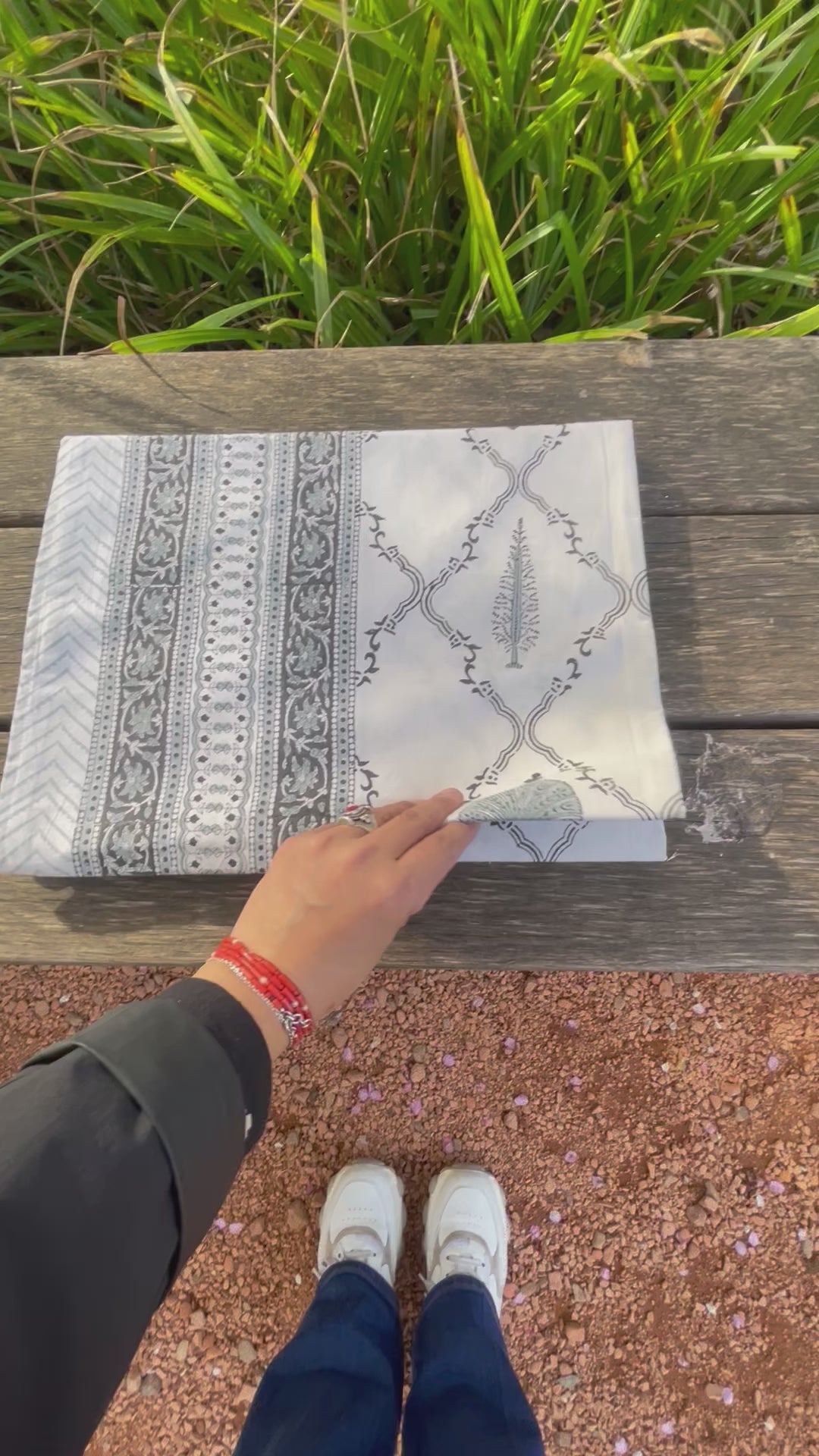 Fabriquée à la main selon les techniques artisanales de block-printing, chaque pièce est unique et peut présenter de légères variations, signes de son authenticité.