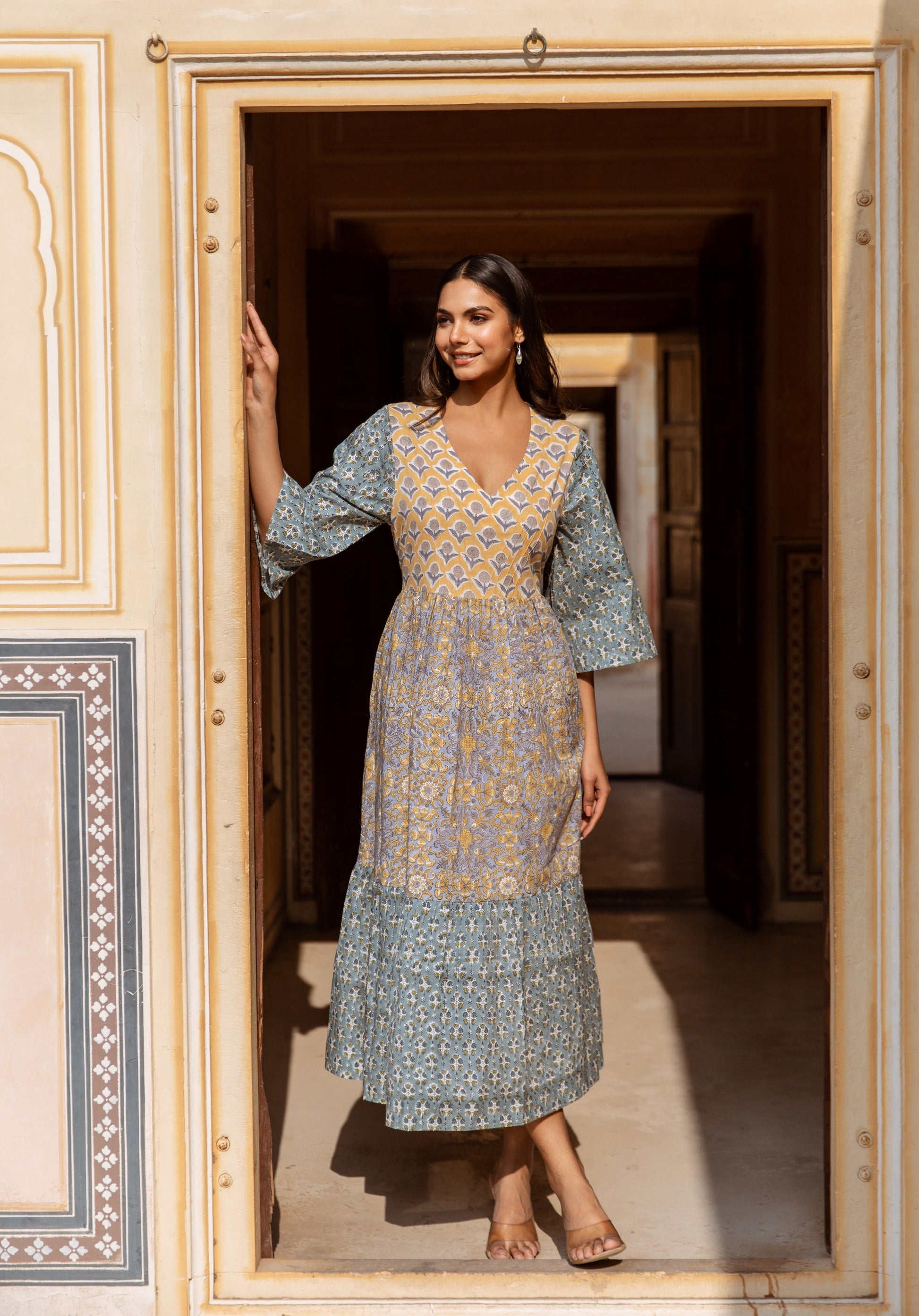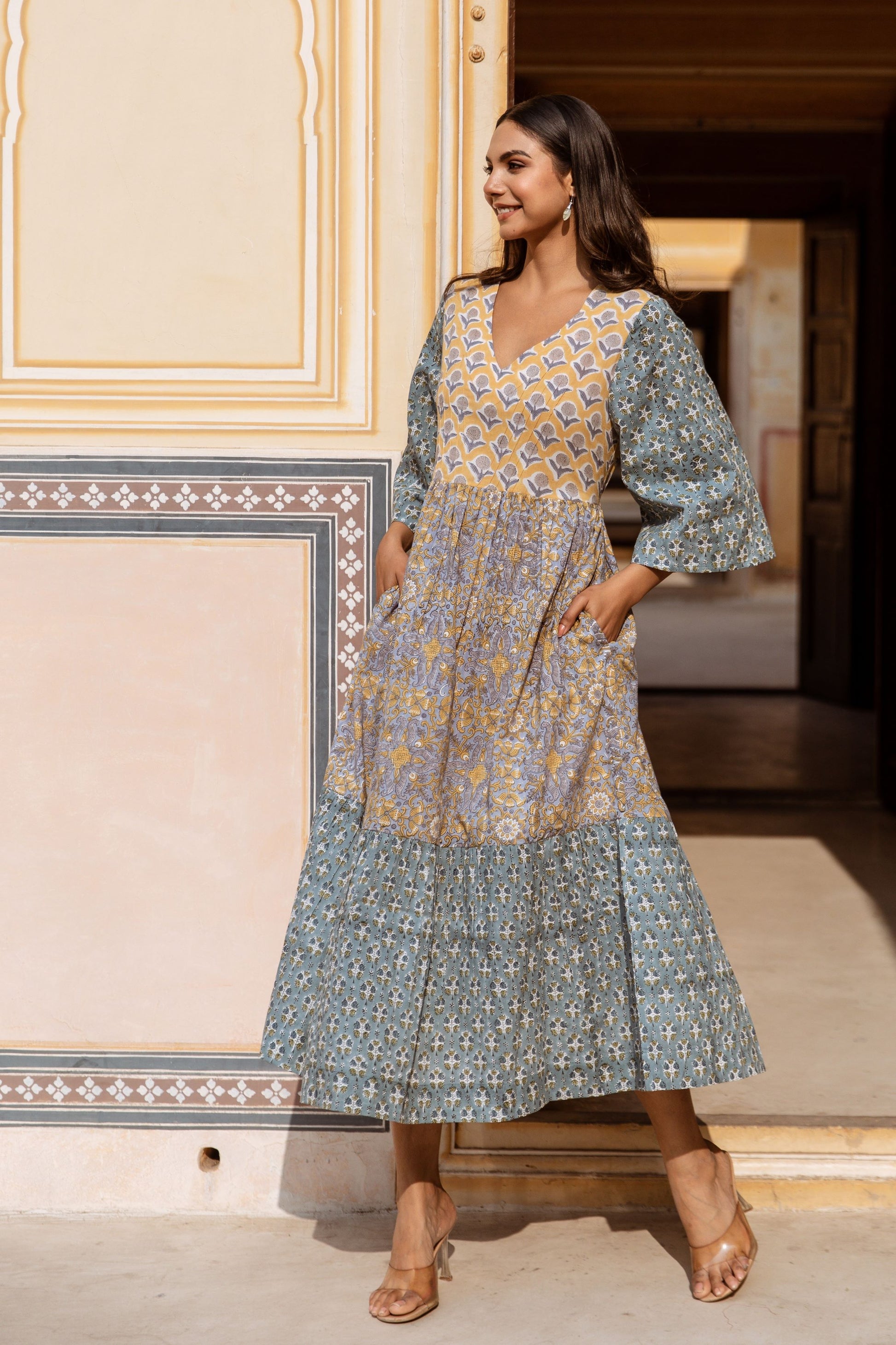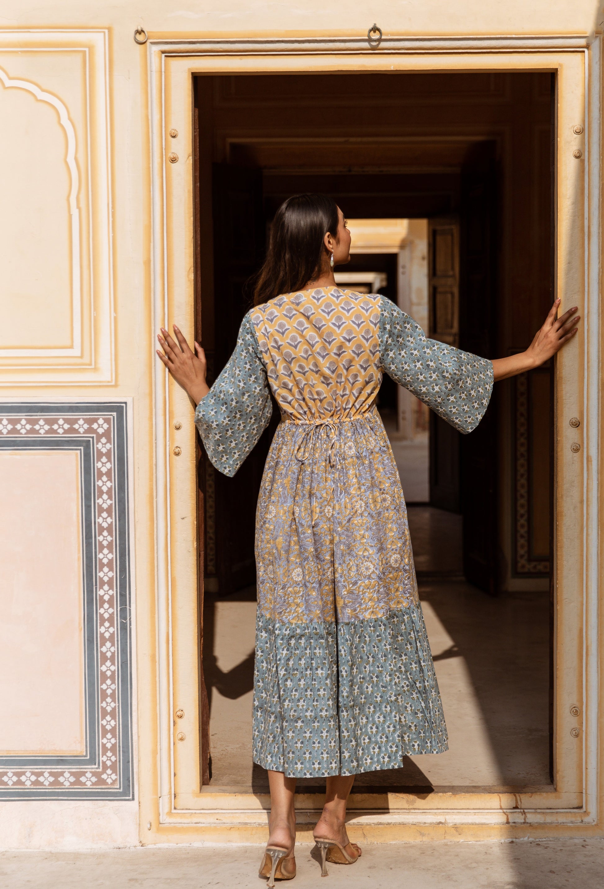 Découvrez la ROBE LAKSHMI en pur coton imprimée à la main selon la technique du block print en Inde. Son tissu agréable sur la peau vous assure un confort optimal.