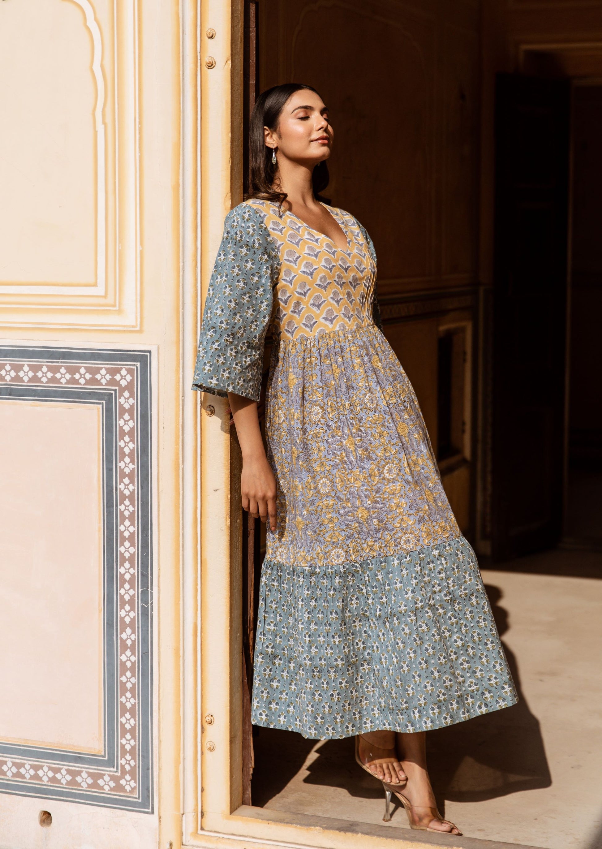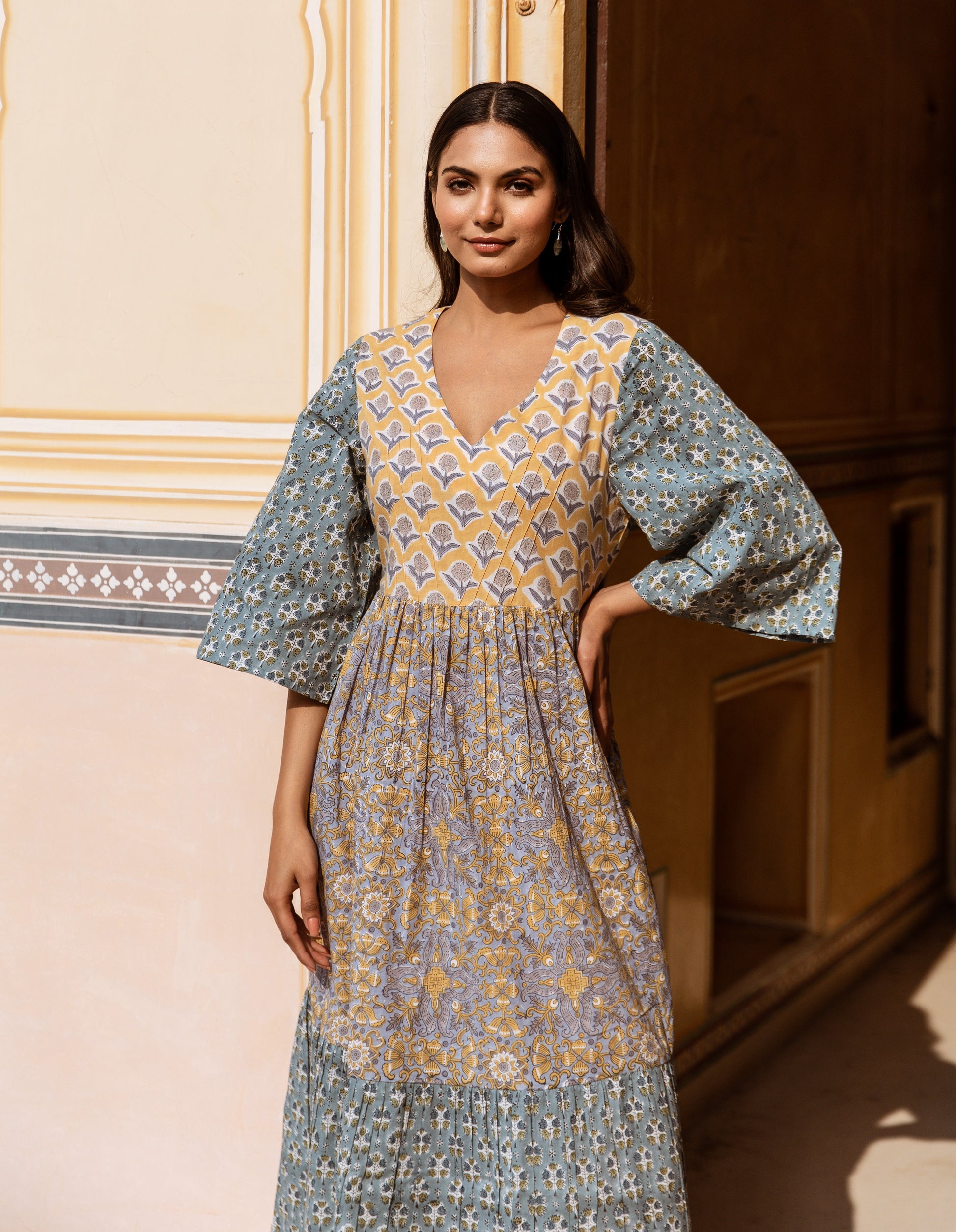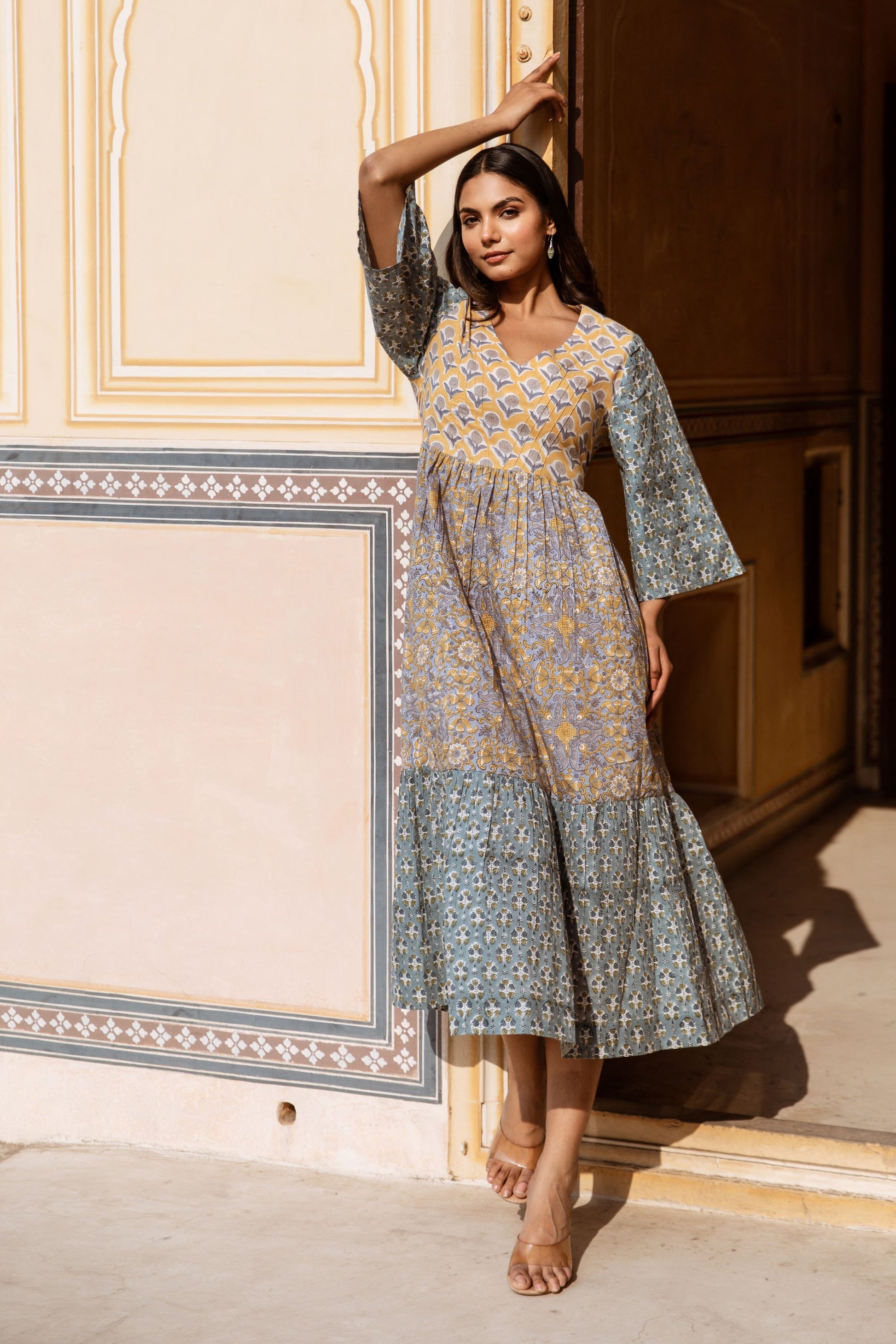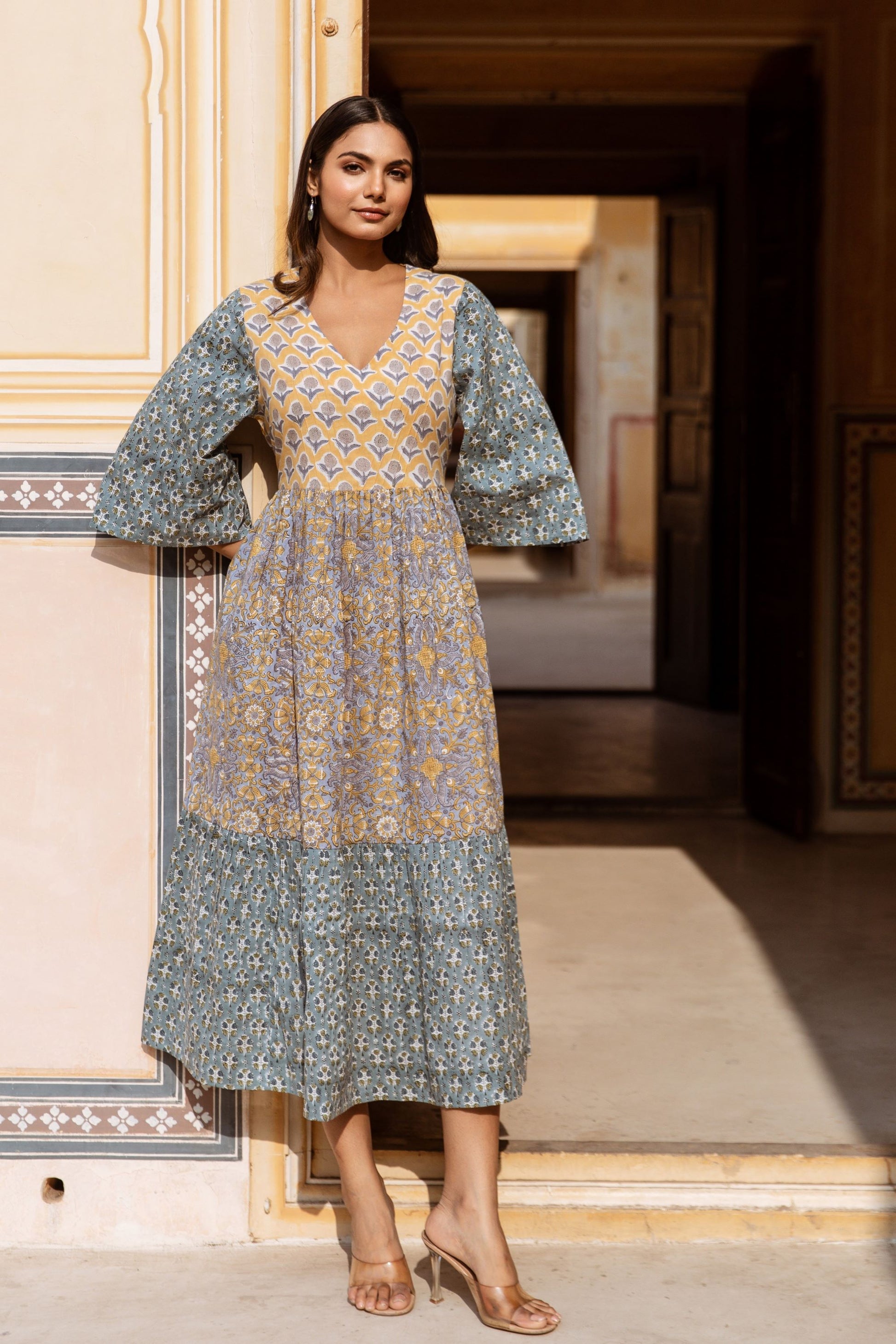 Découvrez la ROBE LAKSHMI en pur coton imprimée à la main selon la technique du block print en Inde. Son tissu agréable sur la peau vous assure un confort optimal.