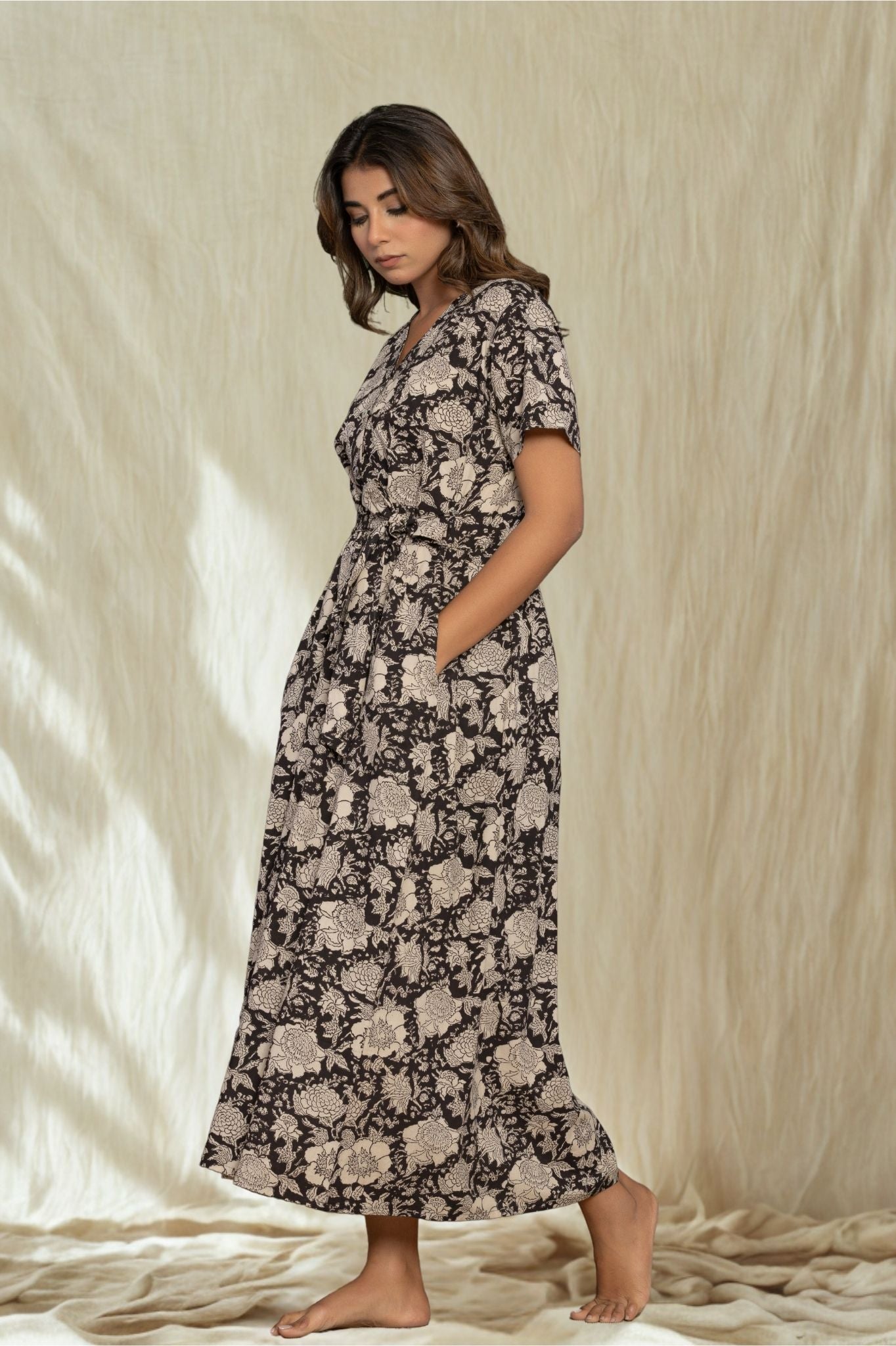 Robe Longue à Fleurs "Noir Elegance"