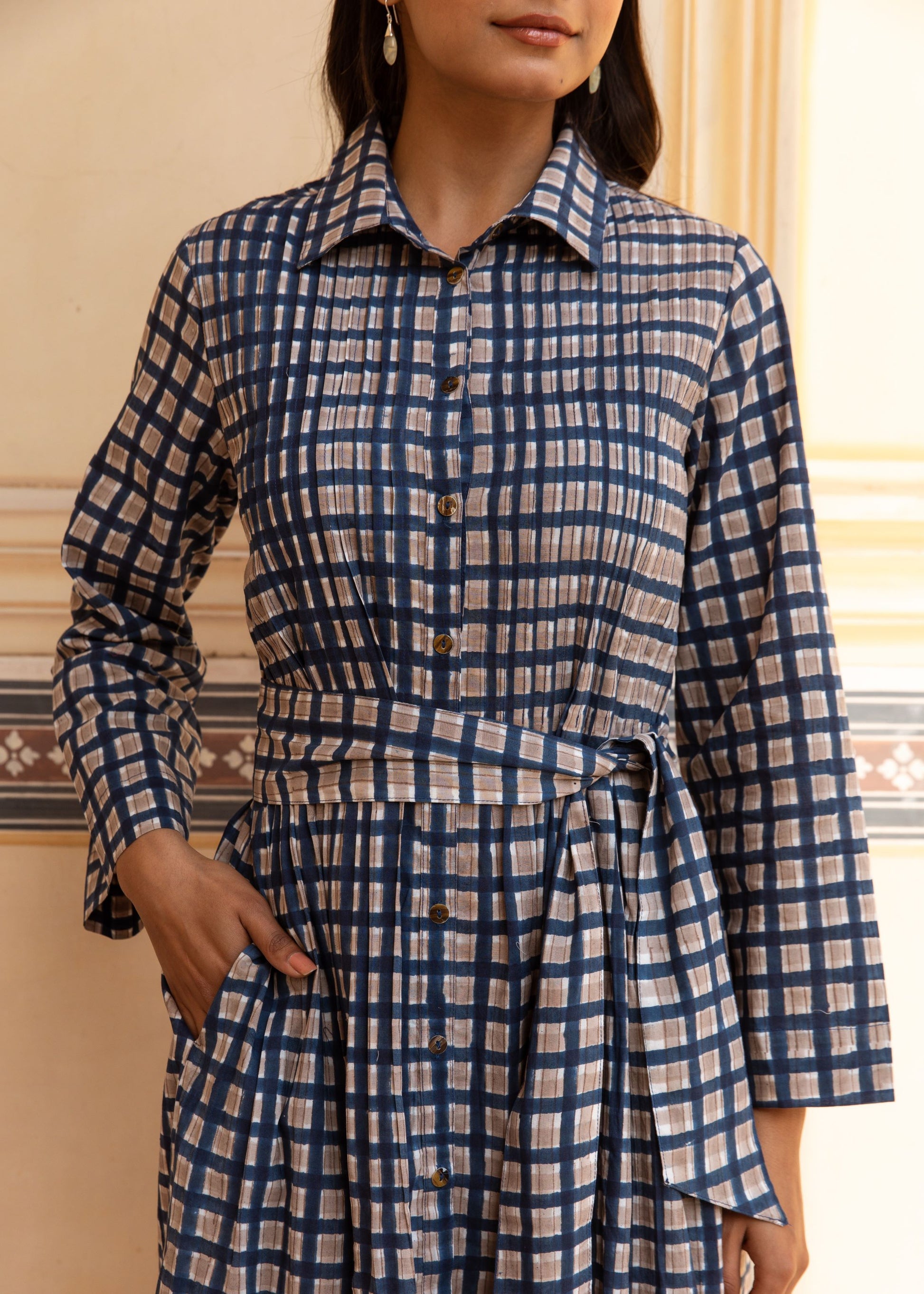 La robe ROBE RAJA CHECK est l'incarnation de l'élégance naturelle et raffinée. Avec son col chemise et ses plis avant et arrière, cette robe allie style et sophistication.